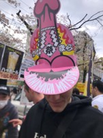 Every year, the highlight of the festival is the ‘Elizabeth float’, the iconic giant pink penis that is organised and carried by drag queens and transgender women, providing a rare opportunity for visibility for Tokyo’s drag scene and transgender population. The float is named after the Elizabeth Kaikan (‘Elizabeth club’) in cross-dressing club in Tokyo, who donated the float in the 1970s, when the festival restarted. She used to only be carried by drag queens, but now the rules have relaxed a little to stipulate that the carriers must dress as an opposite gender. As the drag queens who carry the float have aged, the float is sometimes placed on wheels.